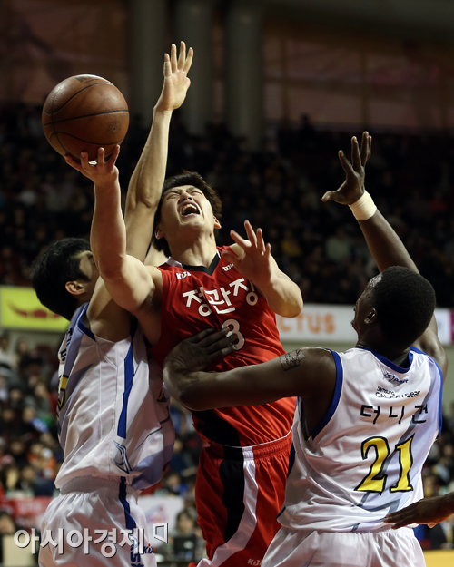 [안양=아시아경제 정재훈 기자] 4일 오후 안양실내체육관에서 열린 KB국민카드 2013~2014 KGC와 삼성의 경기. KGC 최현민이 슛을 시도하고 있다. 정재훈 기자 roze@asiae.co.kr<ⓒ세계를 보는 창 경제를 보는 눈, 아시아경제(www.asiae.co.kr) 무단전재 배포금지>