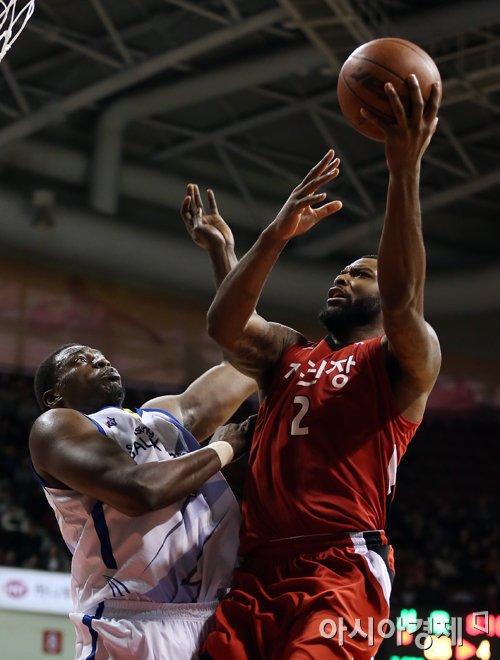[안양=아시아경제 정재훈 기자] 4일 오후 안양실내체육관에서 열린 KB국민카드 2013~2014 KGC와 삼성의 경기. KGC 에반스가 슛을 쏘고 있다. 정재훈 기자 roze@asiae.co.kr<ⓒ세계를 보는 창 경제를 보는 눈, 아시아경제(www.asiae.co.kr) 무단전재 배포금지>