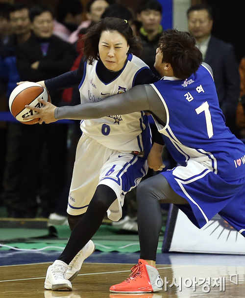 [춘천=아시아경제 정재훈 기자] 5일 오후 강원도 춘천 호반체육관에서 열린 우리은행 2013∼2014 여자프로농구’ 올스타전. 우리동네 예체능 연예인 농구팀과 WKBL 레전드팀의 오프닝 경기에서 정선민이 돌파를 시도하고 있다. 정재훈 기자 roze@asiae.co.kr<ⓒ세계를 보는 창 경제를 보는 눈, 아시아경제(www.asiae.co.kr) 무단전재 배포금지>