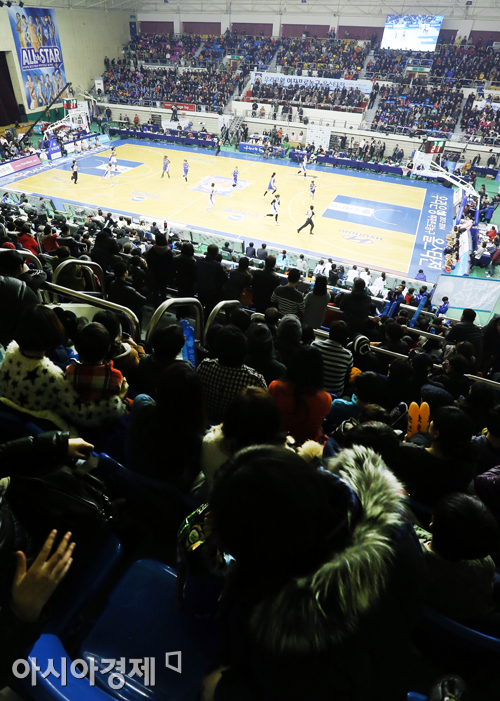 [춘천=아시아경제 정재훈 기자] 5일 오후 강원도 춘천 호반체육관에서 열린 우리은행 2013∼2014 여자프로농구’ 올스타전. 관중들로 경기장이 가득 차 있다. 정재훈 기자 roze@asiae.co.kr<ⓒ세계를 보는 창 경제를 보는 눈, 아시아경제(www.asiae.co.kr) 무단전재 배포금지>