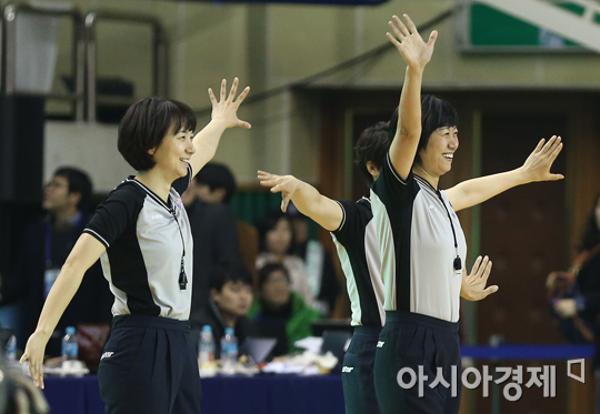 [춘천=아시아경제 정재훈 기자] 5일 오후 강원도 춘천 호반체육관에서 열린 우리은행 2013∼2014 여자프로농구’ 올스타전. 심판들이 경기 중간 율동 타임을 갖고 있다. 정재훈 기자 roze@asiae.co.kr<ⓒ세계를 보는 창 경제를 보는 눈, 아시아경제(www.asiae.co.kr) 무단전재 배포금지>