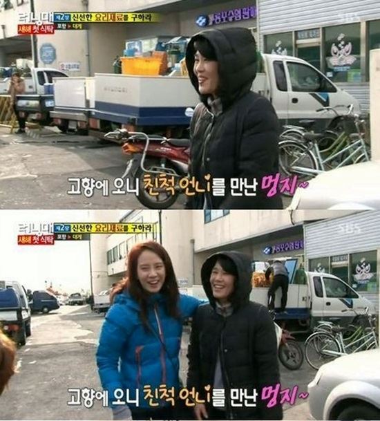 [아시아경제 유수경 기자]배우 송지효의 사촌언니가 공개됐다.5일 오후 방송된 SBS '일요일이 좋다-런닝맨'에서는 새해를 맞아 '2014년 새해 첫 식탁' 레이스가 진행됐다.송지효는 이날 방송에서 자신의 고향인 포항을 방문했다. 이 곳에서 그는 구룡포 수산물 공판장을 찾아 경매에 참여했다.특히 송지효는 미모의 사촌언니를 공개해 주목 받았다. 송지효는 공판장 앞에서 사촌언니를 향해 "잘지냈냐"고 물으며 반가워했다. 송지효와 이동욱은 송지효 사촌언니의 소개로 공판장 구경을 할 수 있었다.한편 송지효가 사촌언니를 공개한 이날 방송에는 송경아, 이동욱, 박수홍, 존 박, 김성규, 김재경 등이 게스트로 출연했다. 유수경 기자 uu84@asiae.co.kr<ⓒ세계를 보는 창 경제를 보는 눈, 아시아경제(www.asiae.co.kr) 무단전재 배포금지>