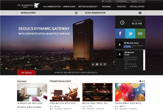 [아시아경제 임혜선 기자]JW 메리어트 호텔 서울이 6일 홈페이지를 전면 개편했다. 이번 홈페이지는 웹표준 준수, 웹접근성 강화, 사용자 편의성 향상, 영문 버전 및 모바일 페이지 개발에 중점을 뒀다.새롭게 선보이는 홈페이지는 사용자의 접근이 편리하도록 사파리, 크롬, 파이어폭스 등 글로벌 6개 브라우저를 지원하며, 장애인과 고령자도 웹사이트에서 손쉽게 정보를 습득할 수 있도록 웹 접근성을 강화했다. 또한 사용자 편의성을 높이기 위해 정보 접근이 용이하도록 메뉴 구조를 변경했으며 콘텐츠 구성도 쉽게 했다. 이밖에도 소셜 기능을 강화해 호텔 공식 페이스북, 트위터, 트립어드바이저를 바로 확인할 수 있도록 했다.한편 JW메리어트 호텔은 이번 홈페이지 새단장을 기념해 '홈페이지 오픈 기념 SNS 스크랩 이벤트'를 진행한다. 새로 오픈한 홈페이지의 콘텐츠를 개인 페이스북과 트위터에 공유한 후 호텔 페이스북 페이지에 스크랩한 URL을 댓글로 남기면 된다. 오는 10일까지 이벤트에 참여한 참가자들 중 추첨을 통해 호텔 숙박권, 식사권, 호텔 제작 다이어리 등의 경품을 증정한다.임혜선 기자 lhsro@asiae.co.kr<ⓒ세계를 보는 창 경제를 보는 눈, 아시아경제(www.asiae.co.kr) 무단전재 배포금지>