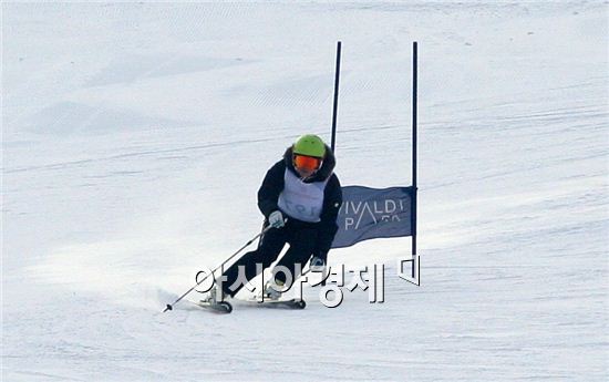 [홍천=아시아경제 백종민 기자] 정몽규 현대산업개발 회장 겸 대한축구협회장이 5일 강원도 홍천 대명 비발디 파크에서 대한스키지도자 연맹 주최 열린 '제 1회 한국오픈레이싱스키대회'에서 날렵한 자세로 기문을 피해 설원을 가르며 질주하고 있다.