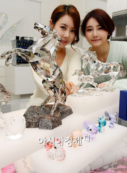 [아시아경제 백소아 기자] 오스트리아 쥬얼리 브랜드 스와로브스키가 6일 서울 중구 롯데호텔 스와로브스키 부티크에서 2014년 갑오년 말의 해를 맞아 말 모티브의 크리스털 오브제를 선보이고 있다.백소아 기자 sharp2046@asiae.co.kr<ⓒ세계를 보는 창 경제를 보는 눈, 아시아경제(www.asiae.co.kr) 무단전재 배포금지>