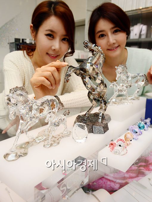 [아시아경제 백소아 기자] 오스트리아 쥬얼리 브랜드 스와로브스키가 6일 서울 중구 롯데호텔 스와로브스키 부티크에서 2014년 갑오년 말의 해를 맞아 말 모티브의 크리스털 오브제를 선보이고 있다.백소아 기자 sharp2046@asiae.co.kr<ⓒ세계를 보는 창 경제를 보는 눈, 아시아경제(www.asiae.co.kr) 무단전재 배포금지>