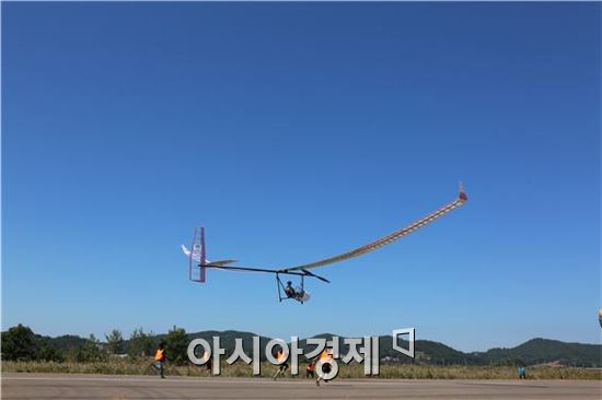“1월 17일까지 참가팀 모집”"9월 26일 전남 고흥 한국항공우주연구원 항공센터에서 개최"[아시아경제 곽경택 기자]사람의 힘으로 하늘을 나는 비행체인 ‘인간동력항공기’ 대회가 국내에서 본격 개최된다.한국항공우주연구원(원장 김승조·항우연)은 ‘2014 인간동력항공기 경진대회’를 오는 9월 26일 예정으로 전남 고흥 한국항공우주연구원 항공센터에서 개최키로 하고 오는 1월 17일까지 참가팀을 모집한다.이번 대회는 항우연 주최로 개최된 2012년 시범대회(국내 대학 및 일반인 11개팀 참가) 및 2013년 경진대회(10개팀 참가)를 이은 2014년 경진대회이다. 인간동력항공기 경진대회는 기계적인 동력을 사용하지 않고 사람의 힘만으로 비행할 수 있는 가볍고 우수한 공기역학 성능의 가진 항공기를 개발하는 능력을 겨루는 대회다.지난 2013 경진대회에서 대회 시상 규정에 적합한 비행성공 기록은 달성되지 않았으나, 참가팀 중 다수가 자체제작한 기체를 조종하여 부분적인 비행에 성공했다.특히 울산대가 130m 비행에 성공하는 등 항공우주(연) 시범기는 2012 시범대회의 기록(240m)을 갱신한 291m 비행에 성공했다.이번 ‘2014 인간동력항공기 경진대회’에는 항공기 설계 및 제작에 관심 있는 국내 단체 및 개인(대학(원)생/고등학생)?동아리면 누구나 참가할 수 있다.단, 참가신청을 마친 참가팀은 향후 비행체 설계도면 등과 같은 기체제작 계획서를 제출해야 하며, 항우연은 관련 전문가로 구성된 평가위원회를 통해 10개팀 내외의 최종 경진대회 참가팀을 선정할 계획이다. 최종 참가팀으로 선정되면 기체 제작에 필요한 주요자재 및 일정 경비가 지급되며, 대회 우승팀에게는 1등 1,500만원, 2등 1,000만원, 3등 500만원의 포상이 주어진다.참가신청서는 한국항공우주연구원 인간동력항공기 홈페이지(//hpa.kari.re.kr )에서 다운로드 받을 수 있으며, 1월 17일까지 이메일(wychoi21@kari.re.kr )을 통해 제출하면 된다. 기타 자세한 문의사항과 향후 대회일정은 한국항공우주연구원 홈페이지를 참고하거나 전화(042-870-3668)를 통해 알아볼 수 있다.곽경택 기자 ggt1359@ <ⓒ세계를 보는 창 경제를 보는 눈, 아시아경제(www.asiae.co.kr) 무단전재 배포금지>