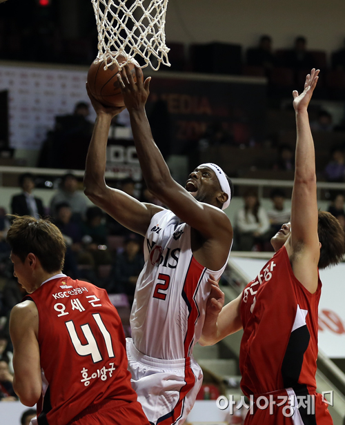 [안양=아시아경제 정재훈 기자] 7일 오후 안양실내체육관에서 열린 KB국민카드 2013~2014 프로농구 KGC와 모비스의 경기. 모비스 로드 벤슨이 슛을 시도하고 있다. 정재훈 기자 roze@asiae.co.kr<ⓒ세계를 보는 창 경제를 보는 눈, 아시아경제(www.asiae.co.kr) 무단전재 배포금지>