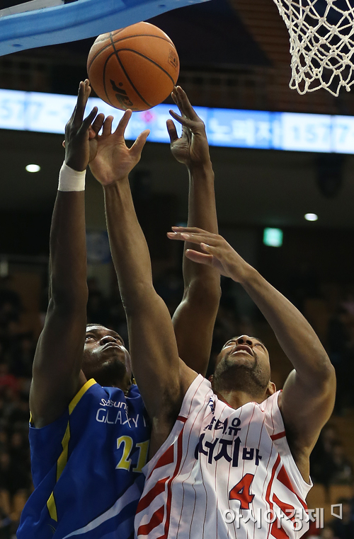 [아시아경제 정재훈 기자] 8일 오후 서울 잠실실내체육관에서 열린 KB국민카드 2013~2014 프로농구 삼성과 오리온스의 경기. 삼성 더니건과 오리온스 윌리엄스가 리바운드를 다투고 있다. 정재훈 기자 roze@asiae.co.kr<ⓒ세계를 보는 창 경제를 보는 눈, 아시아경제(www.asiae.co.kr) 무단전재 배포금지>