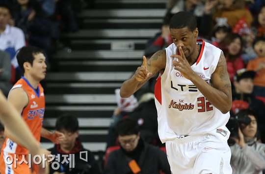 [아시아경제 정재훈 기자] 9일 오후 인천 삼산월드체육관에서 열린 KB국민카드 2013~2014 프로농구 전자랜드와 SK의 경기. SK 헤인즈가 득점을 올린 동료를 향해 손짓을 하고 있다.정재훈 기자 roze@asiae.co.kr<ⓒ세계를 보는 창 경제를 보는 눈, 아시아경제(www.asiae.co.kr) 무단전재 배포금지>