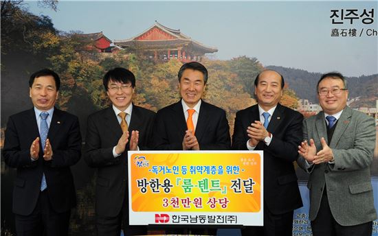 [아시아경제 김혜원 기자] 한국남동발전(사장 허엽)은 9일 진주시청에서 '진주지역 에너지 빈곤층 방한용 룸텐트 전달식'을 가졌다고 10일 밝혔다.방한용 룸텐트 보급 사업은 남동발전이 '지역사회공헌+에너지기업+사회적기업 인큐베이팅'을 키워드로 추진하는 프로젝트로, 지난해 11월22일 사회적기업진흥원과 맺은 '사회적기업 육성 파트너십 지원 협약'에 담겨진 사회공헌 활동의 일환이다.겨울철 빈곤층 난방 문제 해결을 위한 룸텐트 지원 사업은 진주시와 발전소 주변지역 독거노인 가구 및 에너지 빈곤층 가구에 지원해 겨울철 난방온도를 2℃ 낮춤으로써 가구별 월 4만원의 에너지 비용을 절감할 수 있는 에너지 사회공헌 프로그램이다.룸템트는 사회적기업 생산품으로 전기장판만의 난방으로 실내온도를 10℃ 높이는 효과가 있는 보온막이다.남동발전 측은 "이번 룸텐트 보급 사업은 대·중소기업 간 협력 활동을 통해 발생한 성과공유 수익금을 또 다른 중소기업인 사회적기업을 인큐베이팅 하는 한편, 사회적기업의 목적에 따라 취약계층에 지원하는 선순환 구조의 산업 생태계를 조성하는 계기가 될 것"이라고 말했다.김혜원 기자 kimhye@asiae.co.kr<ⓒ세계를 보는 창 경제를 보는 눈, 아시아경제(www.asiae.co.kr) 무단전재 배포금지>