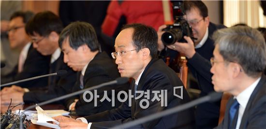 [아시아경제 최우창 기자]추경호 기획재정부 차관이 10일 서울 중구 은행회관에서 열린 거시경제 금융회의에서 참석, 모두발언을 하고 있다.새해 들어 처음으로 열린 이날 회의에서는 미국 양적완화 축소와 가계부채 문제 등 2014년 금융시장 관련 주요 이슈와 최근 시장동향에 대해 관계기관이 함께 논의했다.최우창 기자 smicer@asiae.co.kr<ⓒ세계를 보는 창 경제를 보는 눈, 아시아경제(www.asiae.co.kr) 무단전재 배포금지>
