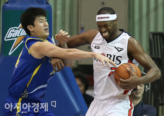 [아시아경제 정재훈 기자] 10일 오후 서울 잠실실내체육관에서 열린 'KB국민카드 2013~2014 프로농구' 삼성과 모비스의 경기. 모비스 로드 벤슨이 삼성 김명훈의 반칙에 신경질을 부리고 있다. 정재훈 기자 roze@asiae.co.kr<ⓒ세계를 보는 창 경제를 보는 눈, 아시아경제(www.asiae.co.kr) 무단전재 배포금지>