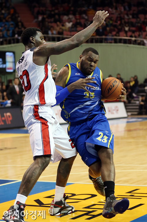 [아시아경제 정재훈 기자] 10일 오후 서울 잠실실내체육관에서 열린 'KB국민카드 2013~2014 프로농구' 삼성과 모비스의 경기. 삼성 존슨이 모비스 라틀리프와 충돌하고 있다. 정재훈 기자 roze@asiae.co.kr<ⓒ세계를 보는 창 경제를 보는 눈, 아시아경제(www.asiae.co.kr) 무단전재 배포금지>