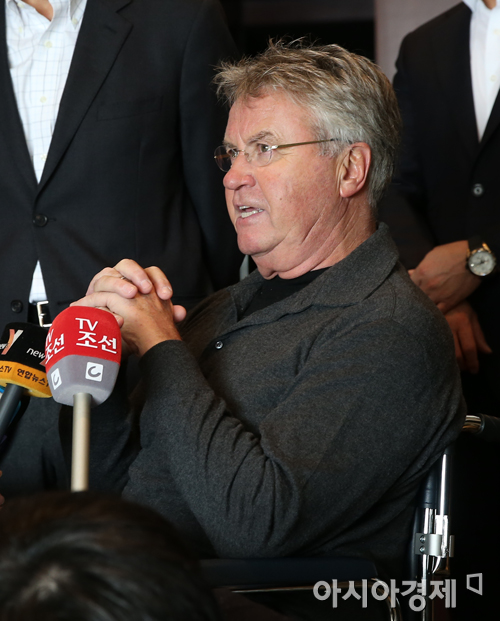 [아시아경제 정재훈 기자] 퇴행성 무릎 관절염 수술을 받은 거스 히딩크 감독이 12일 오후 서울 남산하얏트호텔에서 정몽준 대한축구협회 명예회장, 2002 월드컵 4강 신화 주역들과 오찬을 가졌다. 히딩크 감독이 질문에 답하고 있다.정재훈 기자 roze@asiae.co.kr<ⓒ세계를 보는 창 경제를 보는 눈, 아시아경제(www.asiae.co.kr) 무단전재 배포금지>
