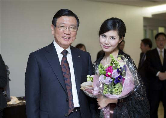 박삼구 금호아시아나문화재단 이사장과 박혜윤 금호아트홀 바이올리니스트(상주음악가)가 기념촬영을 하고 있다.