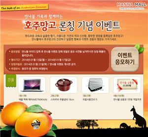 [아시아경제 이광호 기자]진원무역은 호주산 망고 출시를 기념해 오는 17일까지 만나몰(www.mannamall.co.kr)에서 '호주에서 온 선물, 황금빛 호주망고 이벤트'를 진행한다고 13일 밝혔다. 호주망고는 일반적인 망고보다 크고 둥근 모양으로 과피는 황금색과 붉은색을 띠며 씨가 작고 과육의 비율이 높은 것이 특징이다. 과육은 붉은빛이 감도는 황금색을 띠고 있으며 부드러우면서 달콤하고 향긋하다. 애플망고와 비슷하고 보관기간이 긴 것이 특징이다. 호주망고는 유럽, 중동, 러시아, 뉴질랜드, 싱가포르, 홍콩, 중국, 일본 등으로 수출되고 있다. 아시아권에서는 호주망고가 귀한 선물이나 고급 식재료로 인기를 끌고 있다.이벤트는 만나몰 웹사이트에서 응모버튼을 누르고 당첨시 연락 받을 연락처를 입력하는 간단한 방식으로 진행된다. 만나몰 아이디와 댓글을 남기면 당첨확률이 높아진다. 응모한 사람 가운데 106명을 뽑아 1등 한 명에게는 맥북 에어 1대, 2등 2명에게는 유명 주물냄비, 3등 3명에게는 식품건조기, 4등 100명에게는 만나몰 1만원 상품권을 증정한다.한편 호주산 망고는 백화점과 대형 할인점에서 판매되며, 1과 1만원 선에 판매된다. 호주산 망고는 200g 기준 비타민 A와 C가 하루 권장량의 3배를 함유하고 있을 뿐 아니라 식이섬유와 칼륨이 풍부하며, 항산화 베타카로틴의 훌륭한 공급원이다. 이광호 기자 kwang@asiae.co.kr<ⓒ세계를 보는 창 경제를 보는 눈, 아시아경제(www.asiae.co.kr) 무단전재 배포금지>