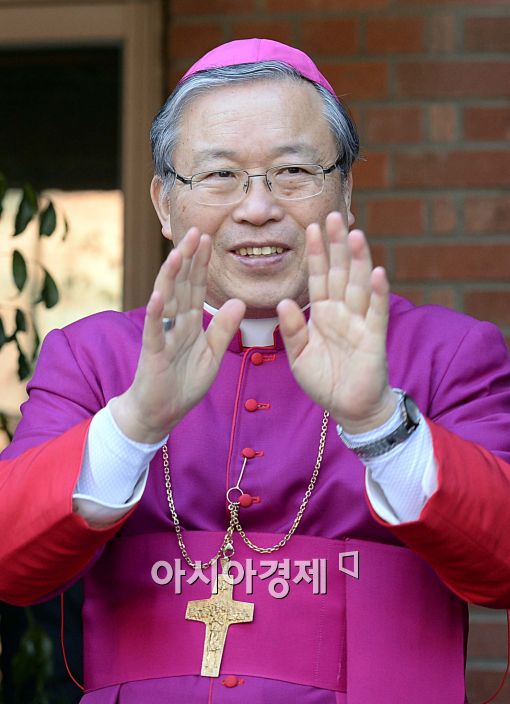 [아시아경제 최우창 기자]13일 서울대교구청 앞마당에서 염수정 추기경 임명 축하식이 열린 가운데 염수정 대주교가 손을 흔들며 환한 미소를 짓고 있다. 프란치스코 교황은 지난 12일 한국의 염수정 대주교를 포함한 새 추기경 19명을 다음 달 임명할 것이라고 밝혔으며 염 대주교는 다음달 22일 로마 바티칸에서 열릴 예정인 추기경 서임식에서 한국의 세 번째 추기경으로 서임된다.최우창 기자 smicer@asiae.co.kr<ⓒ세계를 보는 창 경제를 보는 눈, 아시아경제(www.asiae.co.kr) 무단전재 배포금지>