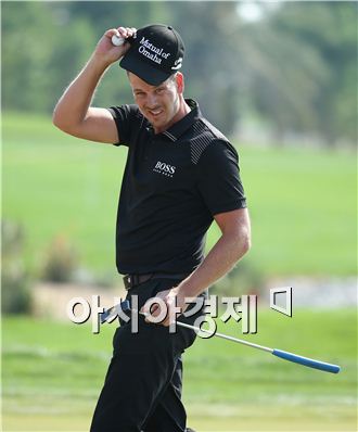헨리크 스텐손이 HSBC골프챔피언십 둘째날 9번홀 경기를 마친 뒤 낙심한 표정을 짓고 있다. 아부다비(아랍에미리트연합)=Getty images/멀티비츠