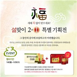 [아시아경제 이광호 기자]풀무원녹즙은 건강음료를 2박스 구매하는 고객을 대상으로 힘찬 홍삼을 무료로 증정하는 설 맞이 '건강음료 2+1 특별기획전'을 진행한다고 19일 밝혔다.이번 기획전은 만성피로와 스트레스로 활력이 필요한 남성을 위한 '칡즙과 헛개나무(6만6000원)', 여성에게 좋은 석류를 가득 담아 건강뿐만 아니라 미용까지 고려한 '석류(6만6000원)', 세계 10대 수퍼푸드로 각광받고 있는 블루베리 350알을 1포에 가득 담은 '야생블루베리(6만9000원) 등 베스트셀러 제품이 다양하게 준비돼 있다.이광호 기자 kwang@asiae.co.kr<ⓒ세계를 보는 창 경제를 보는 눈, 아시아경제(www.asiae.co.kr) 무단전재 배포금지>