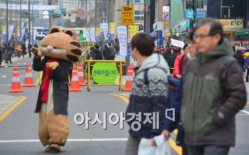 [아시아경제 백소아 기자] 19일 서울 서대문구 신촌 연세로에서 시민들이 차로 위를 걷고 있다. 대중교통 전용지구로 지정된 연세로는 매주 토요일 오후 2시부터 일요일 저녁 10시까지 모든 차량통행이 전면 통제되는 보행전용지구로 지정되었다.백소아 기자 sharp2046@asiae.co.kr<ⓒ세계를 보는 창 경제를 보는 눈, 아시아경제(www.asiae.co.kr) 무단전재 배포금지>