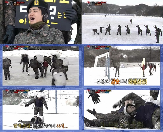 [아시아경제 e뉴스팀]개그맨 서경석이 환상적인 드리블 솜씨를 선보였다.19일 오후 방송된 MBC '일밤-진짜 사나이'에서는 6박7일의 휴가가 걸려있는 백골 최강 전투리그가 펼쳐졌다.이날 최강 전투 리그 개회식은 유명인 중사의 사회로 진행됐다. 첫 번째 리그 종목은 군장전투 축구였다.이어 12중대 2소대와 11중대 3소대의 경기가 펼쳐졌다. 12중대는 독수리 날갯짓으로 화려한 응원을 시작했다.11중대 소속 서경석은 리오넬 메시를 능가하는 화려한 드리블을 선보였다. 제작진은 '현역 은퇴하고도 남을 나이 44세' '노장 투혼'이라는 자막을 더해 웃음을 선사했다.이날 서경석은 두 골을 넣었고, 11중대는 3:0으로 12중대에 앞섰다.e뉴스팀 ent@asiae.co.kr<ⓒ세계를 보는 창 경제를 보는 눈, 아시아경제(www.asiae.co.kr) 무단전재 배포금지>