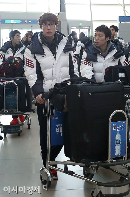 [인천=아시아경제 정재훈 기자] 프랑스 퐁 로뮤로 전지훈련을 떠나는 쇼트트랙 대표팀 이 22일 오전 인천국제공항을 통해 출국하고 있다.쇼트트랙 대표팀과 이승훈은 해발 1850m의 퐁 로뮤에서 고지대 훈련을 갖고 다음달 5일 올림픽 결전지인 러시아 소치로 입성한다. 정재훈 기자 roze@asiae.co.kr<ⓒ세계를 보는 창 경제를 보는 눈, 아시아경제(www.asiae.co.kr) 무단전재 배포금지>
