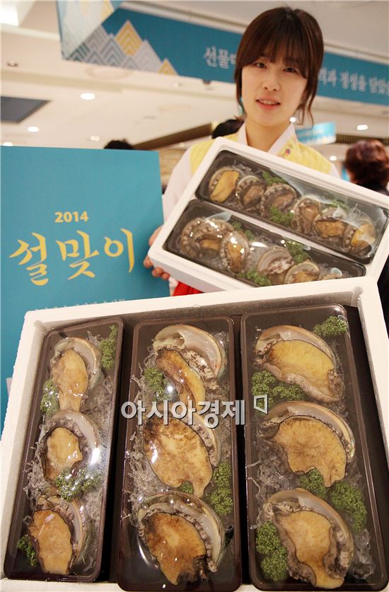 [아시아경제 노해섭 ]광주신세계(대표이사 유신열) 지하 1층 식품매장에서 설 명절을 맞아 완도산 '전복세트'가 고객들로부터 큰 인기를 끌고 있다. 광주신세계는 완도군에서 전복양식 15년 경력의 '신지수'씨와의 직거래를 통해 특별 기획한 전복세트를 10만원 부터 다양하게 선보이고 있다. 사진제공=광주신세계노해섭 기자 nogary@<ⓒ세계를 보는 창 경제를 보는 눈, 아시아경제(www.asiae.co.kr) 무단전재 배포금지>