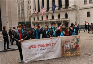 [아시아경제 이광호 기자]커피전문점 카페베네는 지난 13일, 4박 6일간의 일정으로 진행했던 글로벌 문화탐험대 3기, 뉴욕탐험대 활동을 성료했다고 23일 밝혔다. 이번 뉴욕탐험대원 7명은 지난해 12월 공개모집을 통해 선발된 4명과 카페베네 청년봉사단 우수 활동자 3명의 대학생들로 구성됐다. 이들은 한국에서부터 진행된 소원성취 이벤트의 당첨자들을 위한 활동을 수행하고, 뉴욕타임스퀘어 매장에서 한국 문화를 널리 알리고 뉴욕의 주요 거리에서 카페베네 메뉴를 홍보하는 활동을 펼쳤다. 먼저 출발 전 카페베네 소셜네트워크서비스(SNS)를 통해 뉴욕의 지인에게 보내는 메시지 이벤트를 진행해 2건의 사연을 채택했다. 그 중 하나로 뉴욕의 콜롬비아대학교에서 유학 중인 친구를 그리워하는 사연을 접수받아 주인공에게 탐험 대원들이 카페베네 음료와 한국 전통 과자를 선물했다. 또 뉴욕 할렘가에 위치한 데모크라시 프렙차터스쿨(Democracy Prep Charter School)의 소피 리 선생님이 이 카페베네 뉴욕탐험대가 학교에 방문해 학생들에게 한국 문화를 몸소 알려주길 희망한다는 내용의 사연을 보내 와, 대원들이 학교를 방문해 카페베네 메뉴를 선물하고 아이들과 한국에 대한 퀴즈를 푸는 등 의미있는 시간을 보냈다. 아울러 뉴욕탐험대는 카페베네 뉴욕타임스퀘어점을 방문해 매장을 둘러보고, 뉴욕 시민들이 많이 모이는 시간대에 매장 앞에서 한국 고유의 소리를 전달하기 위한 국악공연도 진행했다.이광호 기자 kwang@asiae.co.kr<ⓒ세계를 보는 창 경제를 보는 눈, 아시아경제(www.asiae.co.kr) 무단전재 배포금지>