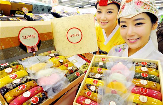 ▲ 23일 서울 영등포구 문래동 홈플러스 영등포점에서 모델들이 '고려당' 떡 선물세트를 판매하고 있다.