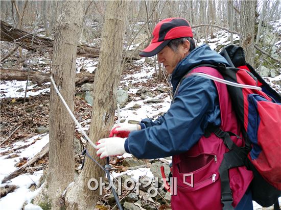 "백암산 가인·남창마을서 판매시작…농한기 지역주민 소득증대 기여 "[아시아경제 김재철 기자]“백암산 맑은 기운을 머금은 고로쇠 한 잔 어때요?”청정지역인 장성 백암산 자락에서 채취해 최고의 품질을 자랑하는 장성 고로쇠 수액이 특유의 단맛으로 소비자 공략에 나섰다. 24일 장성군에 따르면 백암산 가인마을과 남창마을에서 지역의 명품 특산품인 백양고로쇠 수액을 본격 출하, 주문이 쇄도하는 등 절찬리에 판매되고 있다고 밝혔다.장성 백양고로쇠는 지대가 높고 일교차가 큰 백암산에서 해풍을 받지 않아 타 지역에 비해 수액이 맑아 최고의 품질로 평가받고 있다. 또, 수액에는 마그네슘과 칼슘, 자당 등 여러 종류의 미네랄 성분이 다량 함유돼 있어 관절염은 물론, 이뇨와 변비, 위장병, 피부미용 등에 효험이 있는 자연산 웰빙 음료로 알려져 매년 겨울과 초봄에 소비자들이 즐겨 찾는다. 현재 고로쇠 수액은 ▲18ℓ(한말)-5만5000원 ▲1.5ℓ(PT병) 12병-6만원 ▲1.5ℓ(PT병) 6병-3만원에 판매되고 있으며, 현지 구매가 어려운 고객을 위한 택배거래도 가능하다. 단, 1.5ℓ(PT병) 6병은 택배비가 별도다.