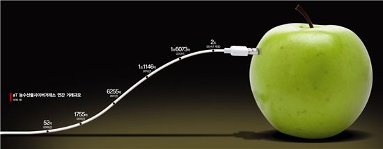 ◆복잡한 오프라인 유통구조 타파= 사이버거래소가 빠른 시간에 자리를 잡을 수 있었던 데에는 오프라인상의 불투명한 유통구조 탓이 크다. 배 소장은 "국내 농수산물은 복잡하고 불투명한 유통구조로 인해 생산지의 농어민은 제대로 된 값을 받지 못하고 소비자들은 비싼 가격에 사 먹을 수밖에 없다"면서 "이를 사이버거래소가 풀어주면서 급성장을 했다고 본다"고 말했다.aT 사이버거래소는 인터넷을 기반으로 농수산물의 전자상거래가 이뤄지는 '종합 e-마켓플레이스'라고 보면 된다. 현재 B2B(기업간 거래), B2C(기업-소비자간 거래), 식재료 전자조달 등 세 부문의 전자상거래를 운영하고 있다. 지난해 aT의 사이버거래소 거래규모는 기업간거래 3050억원, 단체급식전자조달 1조2898억원, B2C쇼핑몰과 소상공인 직거래 규모는 125억원에 달한다. 이 모든 거래는 농수산물사이버거래소 마트(www.eatmart.co.kr)를 통해 이뤄지고 있다.B2B는 중간 유통단계 없이 생산자 조직과 소매유통업체ㆍ외식업체ㆍ식품가공업체ㆍ수출업체 간 대규모 농수산물 인터넷 직거래를 한다. B2C는 일반 소비자를 대상으로 친환경ㆍ지역명품 농수산물 등을 판매한다. 식재료 전자조달은 학교급식 등 단체급식에서 사용하는 식재료를 전자조달 방식으로 공급하는 시스템이다.지난해 말 기준으로 B2C를 이용하는 판매자는 519개소, 이를 이용하는 회원이 무려 3만명에 이르는 것으로 집계됐다. B2B를 이용해 판매하는 업체는 1272곳, 구매하는 업체는 292곳이나 된다. 또 학교급식 전자조달시스템은 17개 시ㆍ도에서 5283개 학교가 이용하고 있다. 학교급식을 시행하는 전국 초ㆍ중ㆍ고교(1만1483개교)의 절반 가까이가 이 시스템을 이용하고 있는 셈이다.◆"2020년 농산물 10% 온라인 거래"= aT는 2020년까지 사이버거래소 거래액 5조원을 실현한다는 목표다. 농산물 유통부문의 시장점유율 10%에 해당되는데, 이 경우 연간 유통비용 2870억원, 물류비용 600억원, 환경비용 7억원 등 총 3477억원의 비용절감 효과가 있을 것으로 기대했다. 특히 올해 신규사업인 골목상권 지원을 위한 소상공인 사이버직거래 시스템인 '포스몰(POS-Mall) 시스템'이 성공적으로 안착될 경우 유통비용 절감효과는 더욱 클 것으로 예상했다. 같은 상권을 공유하는 소형슈퍼나 식당,식육점 등이 공동으로 저렴하게 식재료를 구매할 수 있는 창구를 마련하겠다는 것이다.사이버거래소 출범으로 지난 한 해 절감한 유통비용만 해도 500억여원에 이를 것으로 추정됐다. 대형마트에 비해 유통과정 비용이 14% 가량 절감됐고, 이는 각각 판매자와 소비자의 이익으로 이어졌다고 aT 측은 설명했다. 김재수 aT 사장은 "농수산 분야에 온라인거래라는 기반이 마련됐다는데 큰 의미가 있다"며 "불필요한 유통 비용을 절감시켜 궁극적으로 농수산물 전체 시장에 가격 안정을 꾀할 수 있도록 노력하겠다"고 밝혔다."유통구조 단순화로 가격안정…생산자·소비자 윈윈"배영훈 aT 소장 인터뷰▲ 배영훈 소장