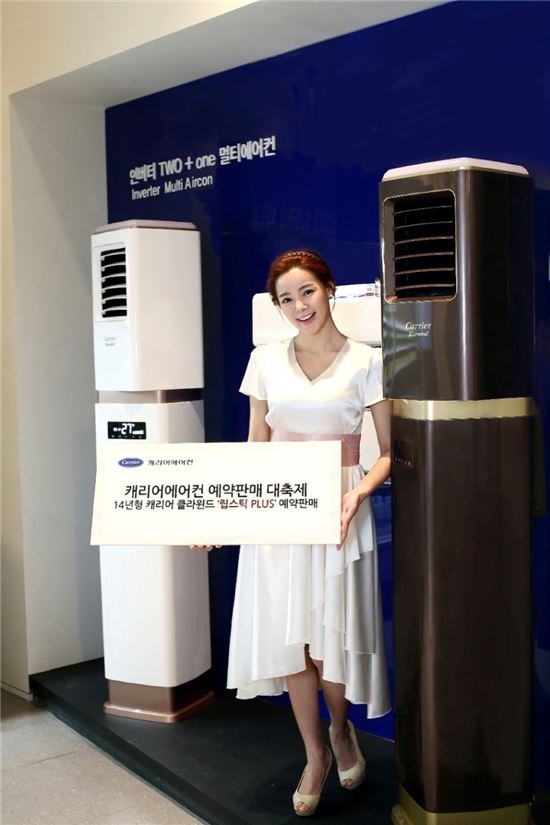 ▲캐리어에어컨이 오는 3월31일까지 신제품 '클라윈드 립스틱 플러스' 예약판매에 들어간다. 구매 고객 중 홈페이지에 정품 등록을 한 경우 3년간 연 1회 전문 서비스 기사가 방문해 무료로 에어컨 열교환기와 필터 청소를 해준다.