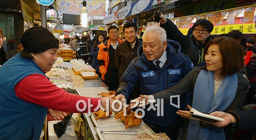 [아시아경제 윤동주 기자] 민족의 명절 설을 앞둔 27일 서울 목동재래시장을 찾은 김한길 민주당 대표와 최명길 부인이 시민들과 새해 인사를 나누고 있다.윤동주 기자 doso7@asiae.co.kr<ⓒ세계를 보는 창 경제를 보는 눈, 아시아경제(www.asiae.co.kr) 무단전재 배포금지>