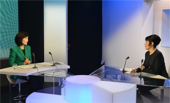 [아시아경제 조민서 기자]조윤선 여성가족부 장관이 27일 오후 프랑스24 TV에 출연해 여성이슈와 위안부 피해자에 대한 관심을 촉구하는 인터뷰를 하고 있다. 녹화로 진행된 이번 인터뷰는 여성인력활용, 젠더이슈, 앙굴렘 만화페스티벌에 출품한 위안부 피해자에 대한 이야기 등을 주제로 20여분간 진행됐다. 조민서 기자 summer@asiae.co.kr<ⓒ세계를 보는 창 경제를 보는 눈, 아시아경제(www.asiae.co.kr) 무단전재 배포금지>