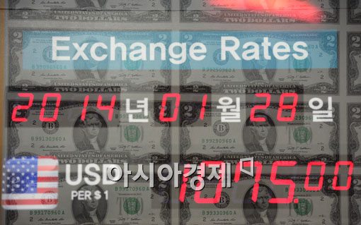 [아시아경제 백소아 기자] 미국의 테이퍼링으로 인해 신흥국들의 금융상황이 요동을 치는 가운데 28일 서울 중구 명동 환전소에 원-달러 환율이 1079원에 거래되고 있다.백소아 기자 sharp2046@asiae.co.kr<ⓒ세계를 보는 창 경제를 보는 눈, 아시아경제(www.asiae.co.kr) 무단전재 배포금지>