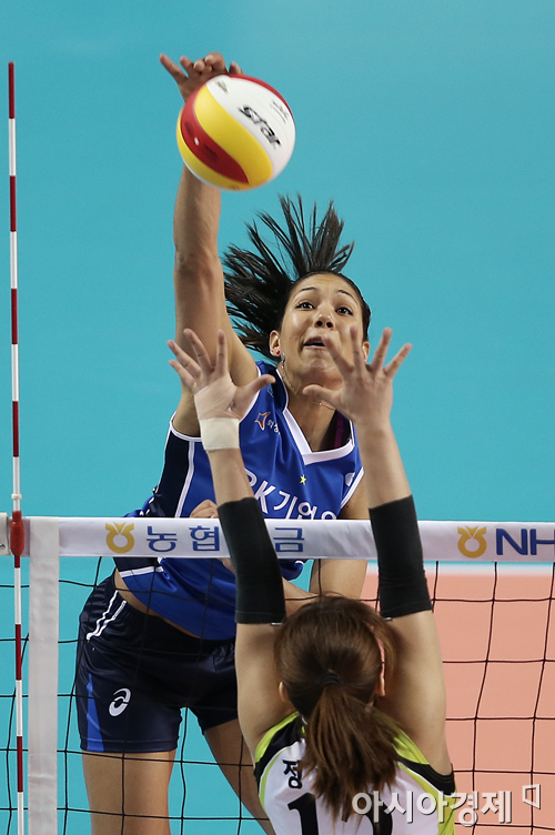 [화성=아시아경제 정재훈 기자] 29일 오후 화성실내체육관에서 열린 NH농협 2013~2014 V리그 여자부 IBK기업은행과 현대건설의 경기. IBK기업은행 카리나가 스파이크를 때리고 있다.정재훈 기자 roze@asiae.co.kr<ⓒ세계를 보는 창 경제를 보는 눈, 아시아경제(www.asiae.co.kr) 무단전재 배포금지>정재훈 사진기자 roze@asiae.co.kr<ⓒ아시아 대표 석간 '아시아경제' (www.newsva.co.kr) 무단전재 배포금지>