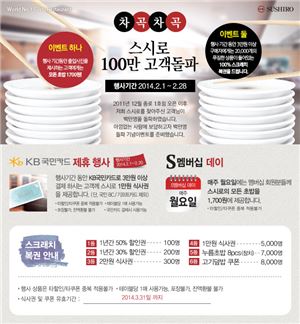 [아시아경제 이광호 기자]회전초밥 레스토랑 스시로한국은 누적고객 수 100만명을 돌파를 기념해 오는 28일까지 스시로 전 매장에서 이벤트를 진행한다고 3일 밝혔다.100만 고객돌파를 기념해 진행되는 이번 이벤트는 행사 기간 동안 3만원 이상 결제한 고객에게 꽝이 없는 100% 당첨 스크래치 복권을 제공한다. 총 2만 여명에게 제공되는 이번 스크레치 복권은 1등 1백명에게 연간 50% 상시 할인권을, 2등 200명에게는 연간 30% 할인권을, 3등 300명에게는 2만원 식사권, 4등 5000명에게는 1만원 식사권을 증정한다. 5, 6등에 당첨된 1만5000명에게는 누름초밥과 고기덮밥을 무료로 즐길 수 있는 쿠폰이 제공된다. 또 2월 졸업시즌을 맞아 본인의 졸업사진을 제시하는 고객에게 모든 스시접시를 1700원 균일가에 판매한다.홍현희 스시로 홍보팀장은 "100만 고객돌파를 기념해 스시로를 찾아준 고객들과 함께 감사의 마음을 나누고자 다양한 이벤트를 준비하게 됐다"며 "앞으로도 고객들이 믿고 즐길 수 있는 회전초밥 브랜드가 되도록 노력하겠다"고 말했다. 이광호 기자 kwang@asiae.co.kr<ⓒ세계를 보는 창 경제를 보는 눈, 아시아경제(www.asiae.co.kr) 무단전재 배포금지>