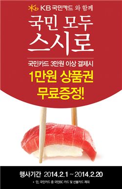 [아시아경제 이광호 기자]회전초밥 레스토랑 스시로한국은 국민카드사와 제휴를 맺고, 오는 20일까지 페이백 프로모션을 진행한다고 5일 밝혔다.이번 행사는 스시로 전 영업장에서 국민카드로 3만원 이상 결제한 고객에게 다음 방문 시 사용할 수 있는 1만원 식사권을 증정하는 방식이다.국민 선불카드를 제외한 모든 신용카드와 체크카드로 결제한 고객에 한해 1일 1회 적용된다. 식사권은 선착순 2000명에게 제공되며, 기간 내 소진 시 조기 종료된다.증정용 식사권은 다음 방문 시 테이블당 1매씩 사용가능하며 타 할인, 타 쿠폰과 중복 사용은 불가하다.홍현희 스시로한국 홍보팀장은 "졸업과 입학, 발렌타인데이 등 외식이 늘어나는 2월을 맞아 고객들에게 실질적인 할인 혜택을 줄 수 있는 페이백 프로모션을 준비했다"며 "올 한해도 소비자들의 외식부담을 덜어주기 위해 다양한 카드사 제휴한 페이백 이벤트를 지속 진행할 계획"이라고 말했다이광호 기자 kwang@asiae.co.kr<ⓒ세계를 보는 창 경제를 보는 눈, 아시아경제(www.asiae.co.kr) 무단전재 배포금지>