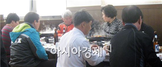 [아시아경제 노해섭 기자]함평군 대동면(면장 김강남) 관내 기관·사회단체장들이 5일 대동면사무소 관내식당에서 점심메뉴로 오리고기를 먹으며 소비촉진에 앞장섰다. 이날 점심은 최근 발생한 조류인플루엔자(AI)로 오리·닭고기 소비가 감소해 농가와 관내 식당이 어려움에 처한 데 따른 것이다. 식사를 마친 대동면 기관·사회단체장과 면 직원 40여 명은 "AI는 70℃에서 30분, 75℃에서 5분 이상 가열할 경우 바이러스가 사멸하기 때문에 익혀 먹을 경우 인체에 무해하다는 내용을 주민들에게 적극 알리겠다"고 다짐했다. 김강남 면장은 “축산농가의 아픔을 함께 하고 소비를 촉진하기 위해 대동면 기관·사회단체장과 면사무소 직원들이 솔선수범해 오리고기를 시식했다”며 “축산농가가 어려움을 빨리 이겨낼 수 있도록 더 많은 분들이 오리·닭고기를 안심하고 먹을 수 있기를 바란다”고 말했다.노해섭 기자 nogary@<ⓒ세계를 보는 창 경제를 보는 눈, 아시아경제(www.asiae.co.kr) 무단전재 배포금지>