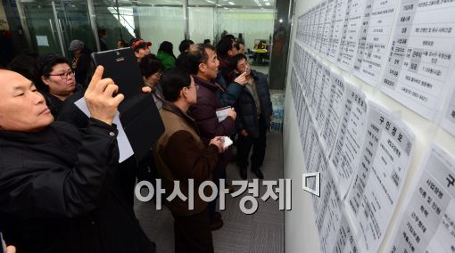 [아시아경제 최우창 기자] 6일 서울 강서구 가양동 서서울모터리움에서 열린 '찾아가는 취업박람회'를 찾은 구직자들이 구인게시판을 바라보고 있다. 강서구와 최근 준공한 자동차 매매전문 백화점 서서울모터리움이 마련한 이번 취업박람회에서는 사무직, 영업직, 차량판매 전문사원, 환경미화 등 7개분야에서 200여명을 채용할 예정이다.최우창 기자 smicer@asiae.co.kr<ⓒ세계를 보는 창 경제를 보는 눈, 아시아경제(www.asiae.co.kr) 무단전재 배포금지>
