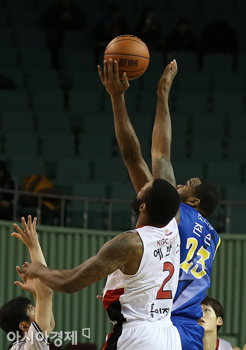 [아시아경제 정재훈 기자] 7일 오후 잠실실내체육관에서 열린 KB국민카드 2013-2014 프로농구 삼성과 KGC의 경기. 삼성 존슨과 KGC 에반스가 점프볼을 다투고 있다. 정재훈 기자 roze@asiae.co.kr<ⓒ세계를 보는 창 경제를 보는 눈, 아시아경제(www.asiae.co.kr) 무단전재 배포금지>