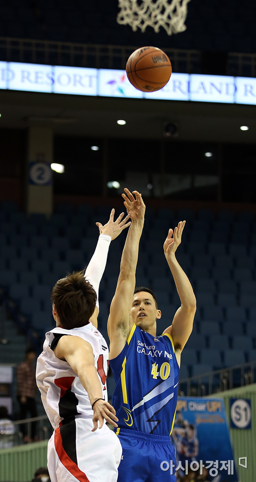 [아시아경제 정재훈 기자] 7일 오후 잠실실내체육관에서 열린 KB국민카드 2013-2014 프로농구 삼성과 KGC의 경기. 삼성 이동준이 슛을 쏘고 있다. 정재훈 기자 roze@asiae.co.kr<ⓒ세계를 보는 창 경제를 보는 눈, 아시아경제(www.asiae.co.kr) 무단전재 배포금지>