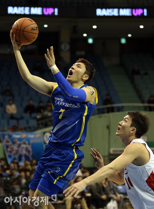 [아시아경제 정재훈 기자] 7일 오후 잠실실내체육관에서 열린 KB국민카드 2013-2014 프로농구 삼성과 KGC의 경기. 삼성 박재현이 레이업슛을 시도하고 있다. 정재훈 기자 roze@asiae.co.kr<ⓒ세계를 보는 창 경제를 보는 눈, 아시아경제(www.asiae.co.kr) 무단전재 배포금지>