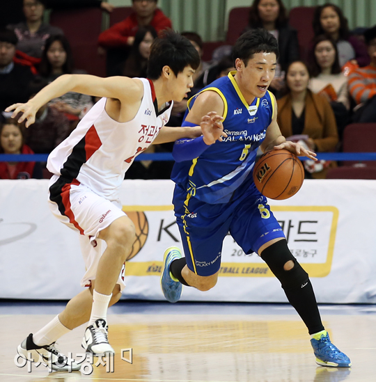 [아시아경제 정재훈 기자] 7일 오후 잠실실내체육관에서 열린 KB국민카드 2013-2014 프로농구 삼성과 KGC의 경기. 삼성 이정석이 돌파를 시도하고 있다. 정재훈 기자 roze@asiae.co.kr<ⓒ세계를 보는 창 경제를 보는 눈, 아시아경제(www.asiae.co.kr) 무단전재 배포금지>