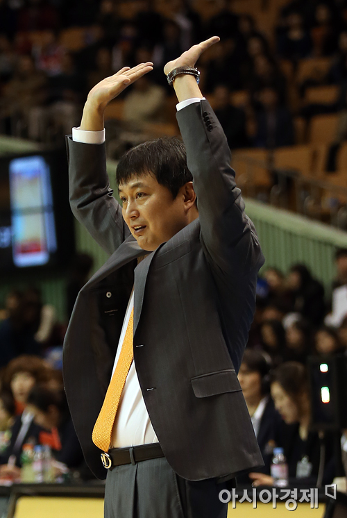[아시아경제 정재훈 기자] 7일 오후 잠실실내체육관에서 열린 KB국민카드 2013-2014 프로농구 삼성과 KGC의 경기. KGC 이상범 감독이 작전 지시를 내리고 있다. 정재훈 기자 roze@asiae.co.kr<ⓒ세계를 보는 창 경제를 보는 눈, 아시아경제(www.asiae.co.kr) 무단전재 배포금지>