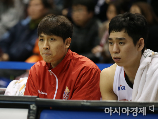 [아시아경제 정재훈 기자] 7일 오후 잠실실내체육관에서 열린 KB국민카드 2013-2014 프로농구 삼성과 KGC의 경기. KGC 김태술이 벤치에서 경기를 지켜보고 있다. 정재훈 기자 roze@asiae.co.kr<ⓒ세계를 보는 창 경제를 보는 눈, 아시아경제(www.asiae.co.kr) 무단전재 배포금지>