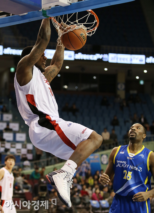 [아시아경제 정재훈 기자] 7일 오후 잠실실내체육관에서 열린 KB국민카드 2013-2014 프로농구 삼성과 KGC의 경기. KGC 맥키네스가 덩크슛을 성공시키고 있다. 정재훈 기자 roze@asiae.co.kr<ⓒ세계를 보는 창 경제를 보는 눈, 아시아경제(www.asiae.co.kr) 무단전재 배포금지>