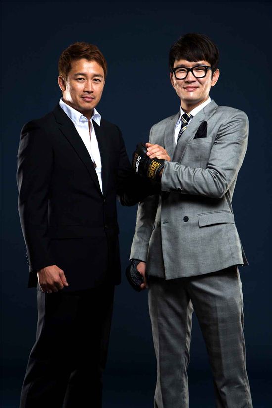 정문홍 로드FC 대표(왼쪽)와 윤형빈[사진=로드FC 제공]