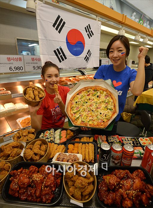 [아시아경제 윤동주 기자]소치 동계올림픽이 한창인 9일 서울 이마트 용산점에서 치킨, 맥주 등 야식 먹거리를 10~30% 가량 할인 판매 행사를 도우미들이 알리고 있다.윤동주 기자 doso7@asiae.co.kr<ⓒ세계를 보는 창 경제를 보는 눈, 아시아경제(www.asiae.co.kr) 무단전재 배포금지>